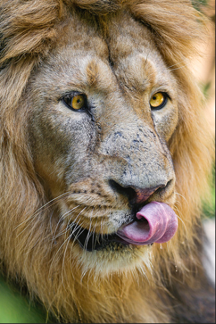 As a general rule it is good to be nervous around all lions, even when they are cross-eyed and licking their nose.