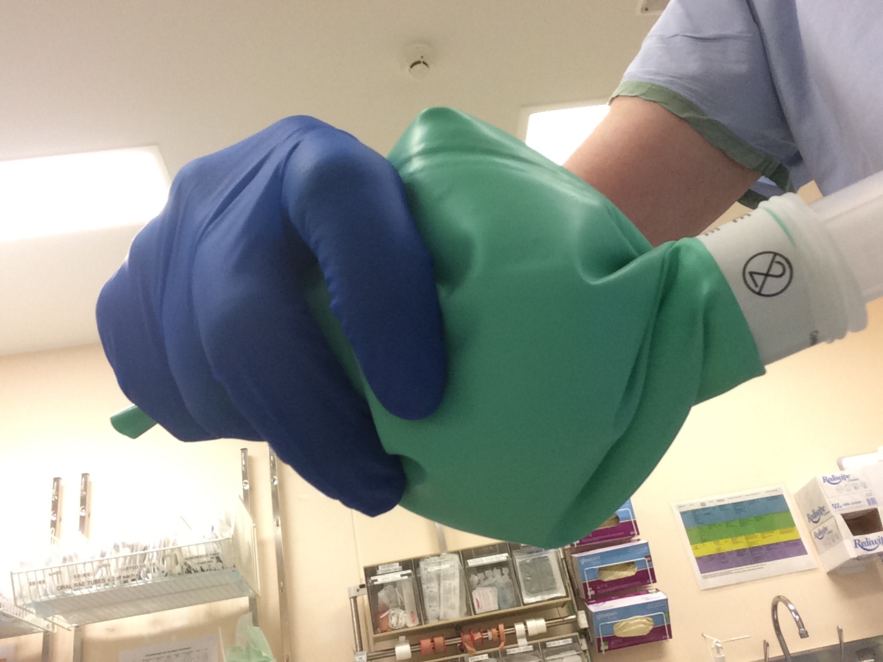 I think a circle circuit is a perfectly good system for pretty much everyone but if you’re using a T-piece get a technique that gives you the full range of control. When I was shown the technique with the bag more in my palm, things got a lot easier. With this technique, you can manage your level of occlusion of the open end of the bag with digits 3, 4 and 5 while the index finger and thumb are ready to bag. You can also reduce the volume of the bag with a quick twist to reduce the volume (a 500 mL bag is very big for a little one). I like this so much more than the technique where you control the end of the bag with index finger and thumb.” (AW)